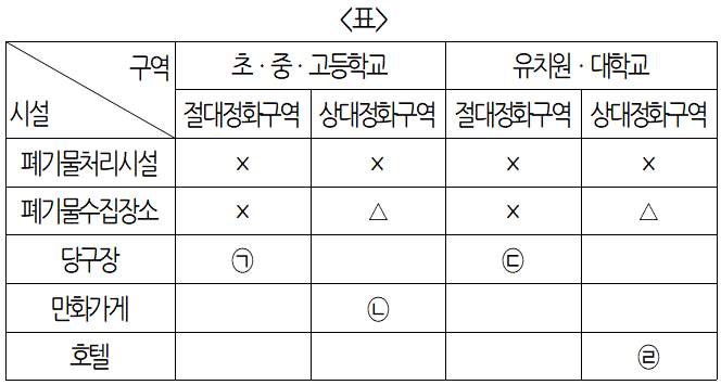 △: 학교환경위생정화위원회의 심의를 거쳐 허용될 수 있는 시설