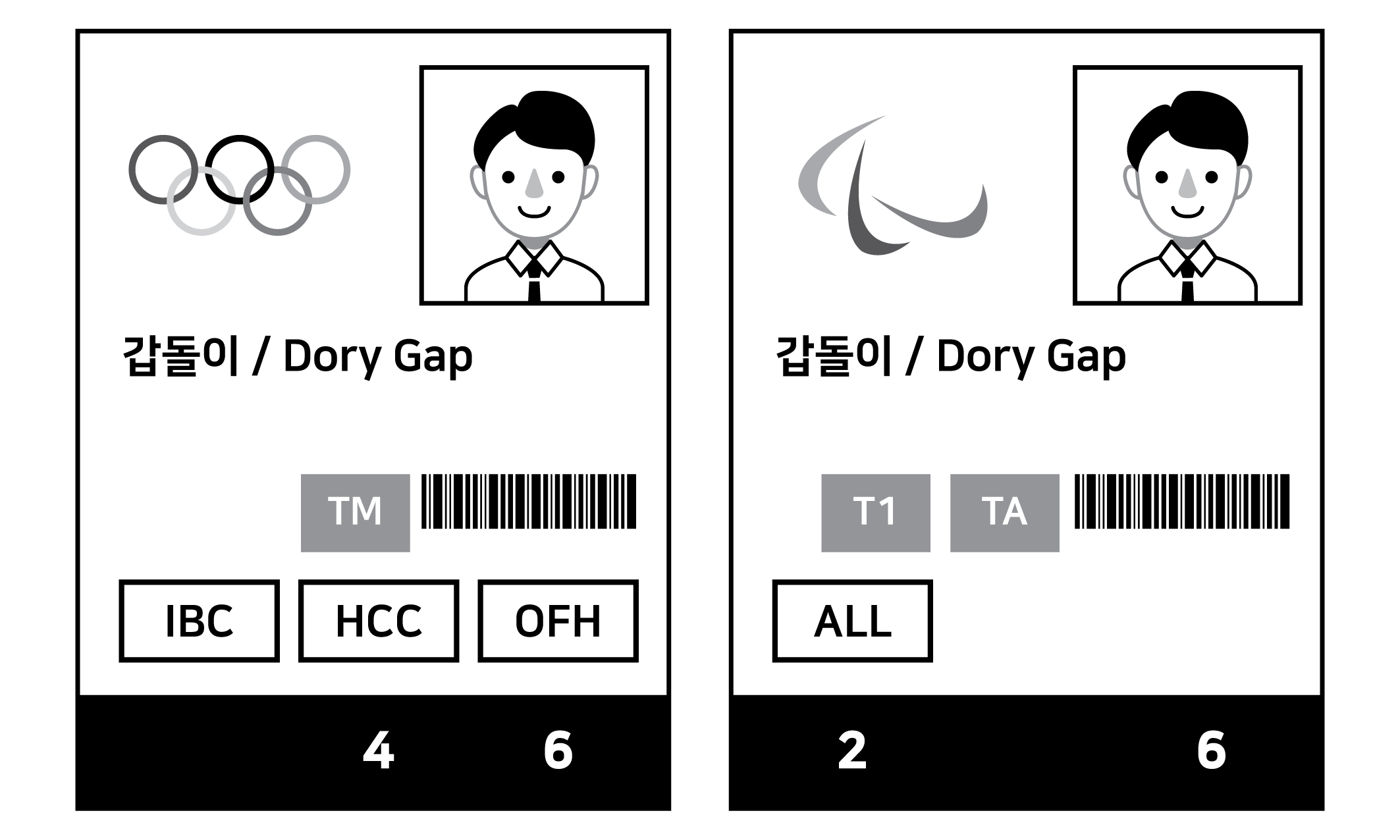 갑돌이는 올림픽 및 패럴림픽 관계자이다. 다음은 갑돌이가 패용한 AD카드이다.