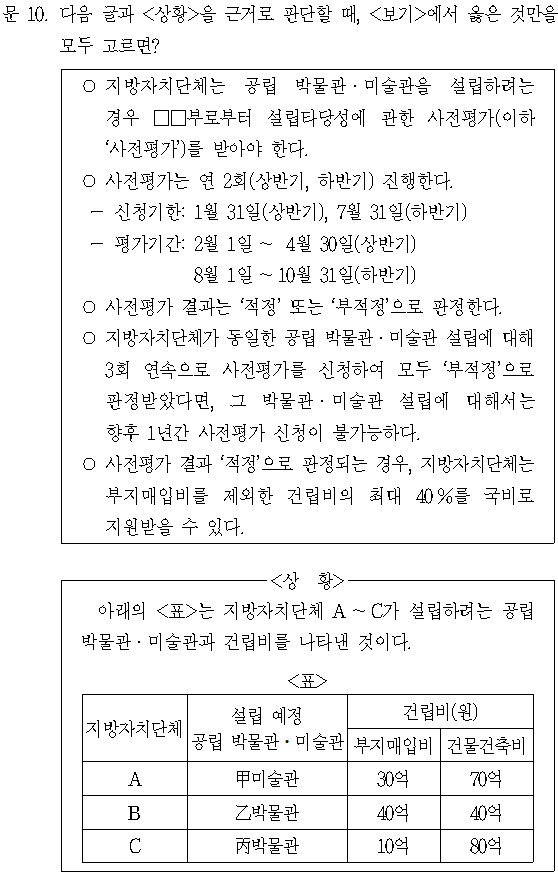 [5급·7급 민간경력자/2021년 나책형] - [21민(나)-10해] 2021년 5급/7급 민간경력자(민경채) PSAT 상황판단 나책형 10번 해설