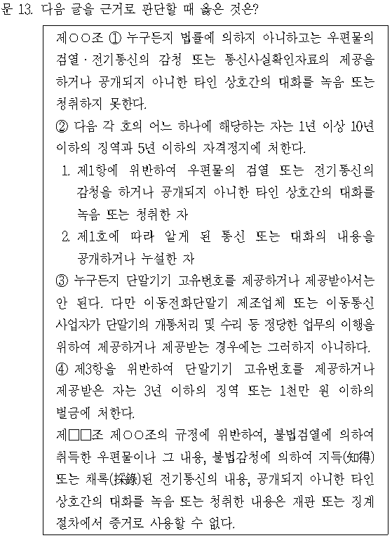 불법으로 타인의 우편물을 검열하는 것은 제2항 제1호에 해당하는 행위이다. 따라서 그 행위자는 1년 이상 10년 이하의 징역과 5년 이하의 자격정지에 처한다. 2년의 징역과 3년의 자격정지는 제2항의 처벌규정의 범위 내이므로 가능하다.