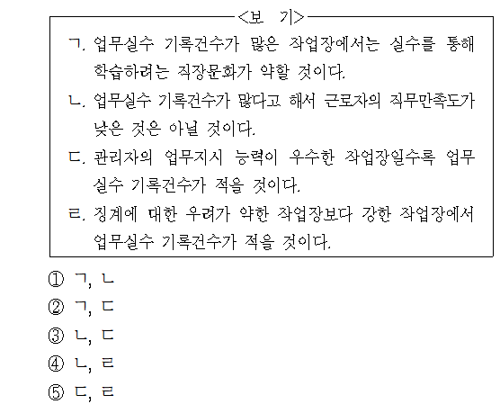 문제 해설 ▷ 정답 ④ ㄱ. (X) 문단2) 근로자가 실수를 통해 학습하려는 직장문화에서는 업무실수 기록건수가 많았다는 것을 통해 업무실수 기록건수가 많은 작업장에서는 실수를 통해 학습하