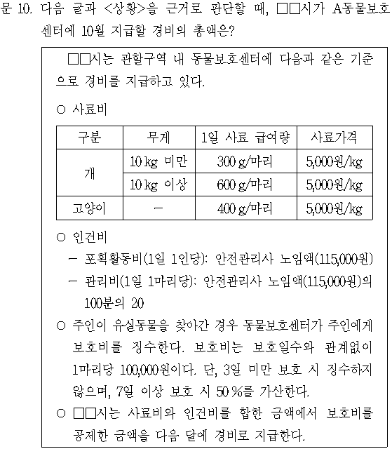 (4) □□시가 A동물보호센터에 10월 지급할 경비의 총액