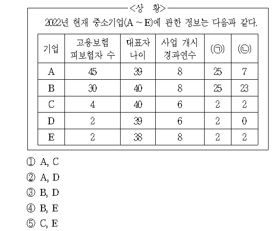 문제 해설 ▷ 정답 ③ 1) 먼저 참여 제한 조건을 고려해, 청년수당 가입유지율이 30% 미만인 A기업은 참여가 불가능하다. 한편, D기업은 청년수당 가입유지율이 30% 미만이나 청년수당 가입 인원