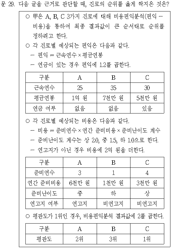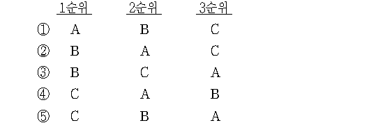 따라서 1순위 C, 2순위 B, 3순위 A가 된다.