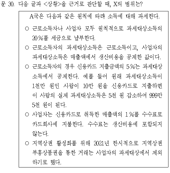 | [22행(나)-30] 2022년 5급 공채 (행정고시) PSAT 상황판단 나책형 30번 (0) | 2023.01.09 |