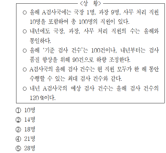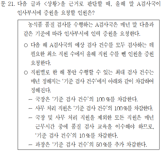 [7급 공채 국가직/2022년 가책형] - [22-7급(가)-21해] 2021년 7급 공채 국가직 PSAT 상황판단 가책형 21번 해설