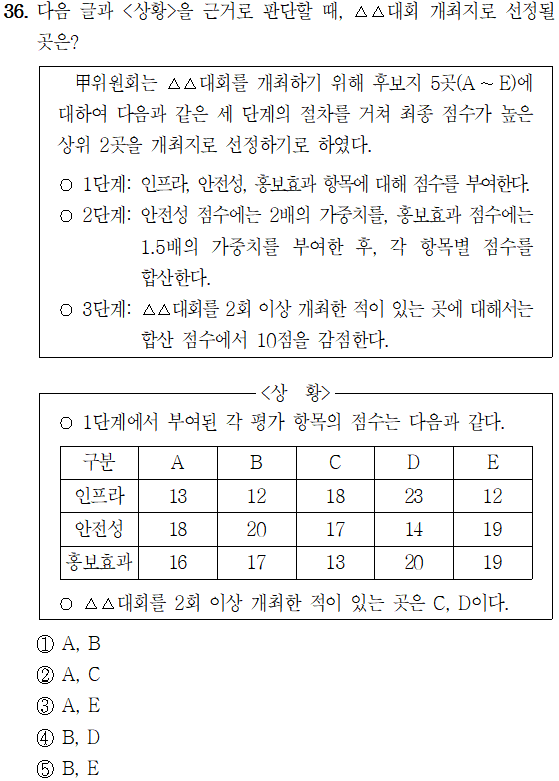 | [23행(가)-36] 2023년 5급 공채 (행정고시) PSAT 상황판단 가책형 36번 (0) | 2023.07.18 |