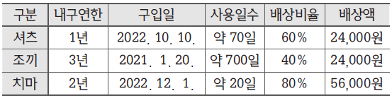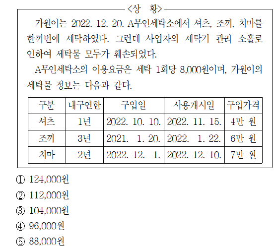 (2) 각 세탁물별 배상액을 구하면 다음과 같다.