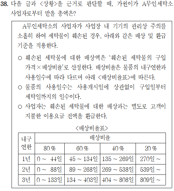 [5급 공채 (행정고시)/2023년 가책형] - [23행(가)-38해] 2023년 5급 공채 (행정고시) PSAT 상황판단 가책형 38번 해설