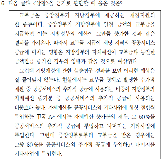 | [23행(가)-6] 2023년 5급 공채 (행정고시) PSAT 상황판단 가책형 6번 (0) | 2023.10.04 |