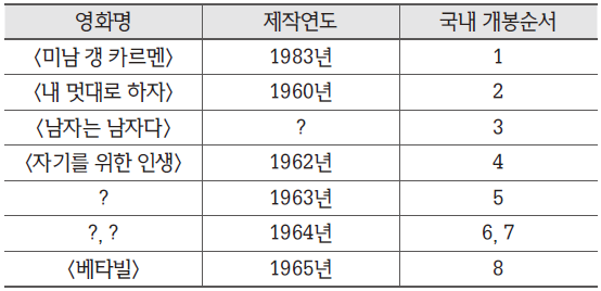 본문의 내용을 고려해, 각 영화별 제작연도와 국내 개봉순서를 정리하면 다음과 같다.