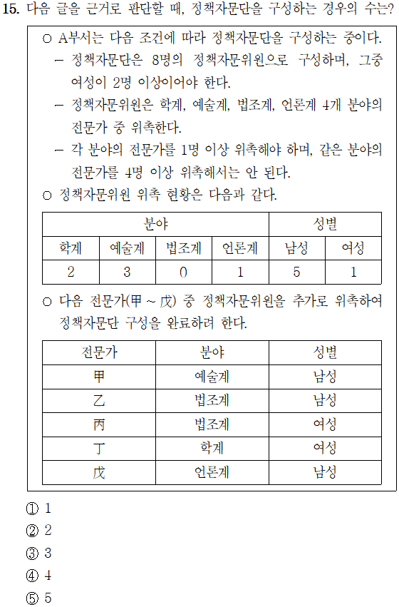[5급 공채 (행정고시)/2023년 가책형] - [23행(가)-15해] 2023년 5급 공채 (행정고시) PSAT 상황판단 가책형 15번 해설
