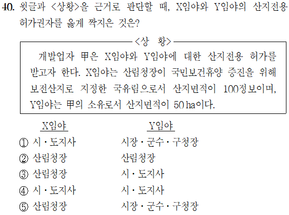Y산지는 사유림이므로, 산지면적 50만m2 이상 200만m2 미만이면서 산림청장 소관이 아닌 국유림, 공유림 또는 사유림의 산지의 산지전용 허가권자는 시ㆍ도지사이다.