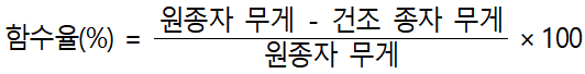 함수율의 수식에 주어진 원종자 무게 10g을 대입하여 함수율 5~10%가 도출되는 건조 종자의 무게를 도출한다.