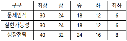 • 甲의 평가항목별 최종점수의 합계는 27+21+28 = 76점이다.