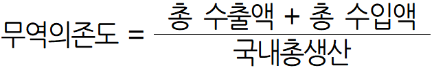 | A, B, C 세 국가는 서로 간에만 무역을 하고 있다. 2019년 세 국가의 수출액은 다음과 같다. ○ A의 B와 C에 대한 수출액은 각각 200억 달러와 100억 달러였다. ○ B의 A와 C에 대한 수출액은 각각 150억 달러와 100억 달러였다. ○ C의 A와 B에 대한 수출액은 각각 150억 달러와 50억 달러였다. A, B, C의 2019년 국내총생산은 각각 1,000억 달러, 3,000억 달러, 2,000억 달러였고, 각 국가의 무역의존도는 다음과 같이 계산한다. |