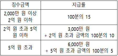 문제 다음 글과 <상황>을 근거로 판단할 때 옳은 것은? 제00조(포상금의 지급) 국세청장은 체납자의 은닉재산을 신고한 자에게 그 신고를 통하여 징수한 금액에 다음 표의 지급률을 적용하여 계