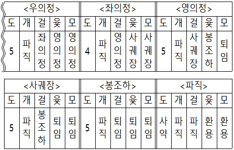 <우의정> 자리에는 도개걸윷모 중 어떠한 칸에도 퇴임이 없으므로 윤목을 1번만 굴려 甲이 퇴임할 수는 없다.