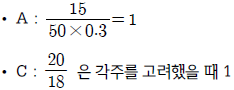 (정확히는 모두 곱하기 100을 한 수치를 비교해야 하나, 어차피 동일한 계산을 공통으로 한다면 이를 공통으로 생략해도 비교를 하는데는 무방하다. 이하 동일하다.)