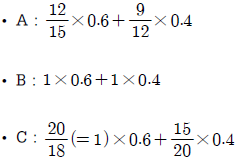 먼저 B와 C를 비교해보면, B와 C는 가중치 0.6의 학교참가도가 1로 동일한데 가중치 0.4의 학교개선도가 B가 더 크므로 평가점수는 B가 C보다 크다.