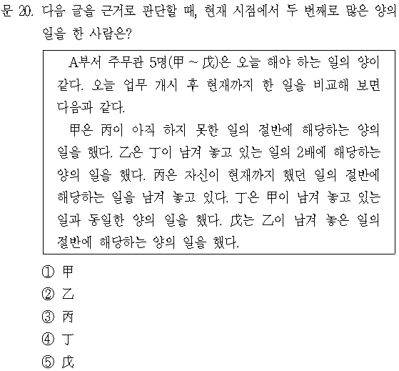 따라서 2x/3의 일을 한 丙이 현재 시점에서 두 번째로 많은 양의 일을 한 사람이다.