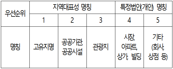 명칭을 병기할 경우 지역대표성 명칭을 우선하고, 특정법인(개인) 명칭을 뒤로 해야 한다.